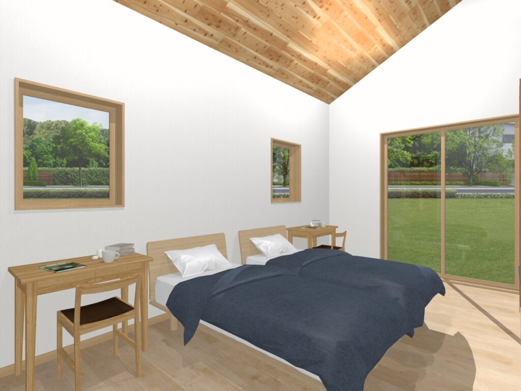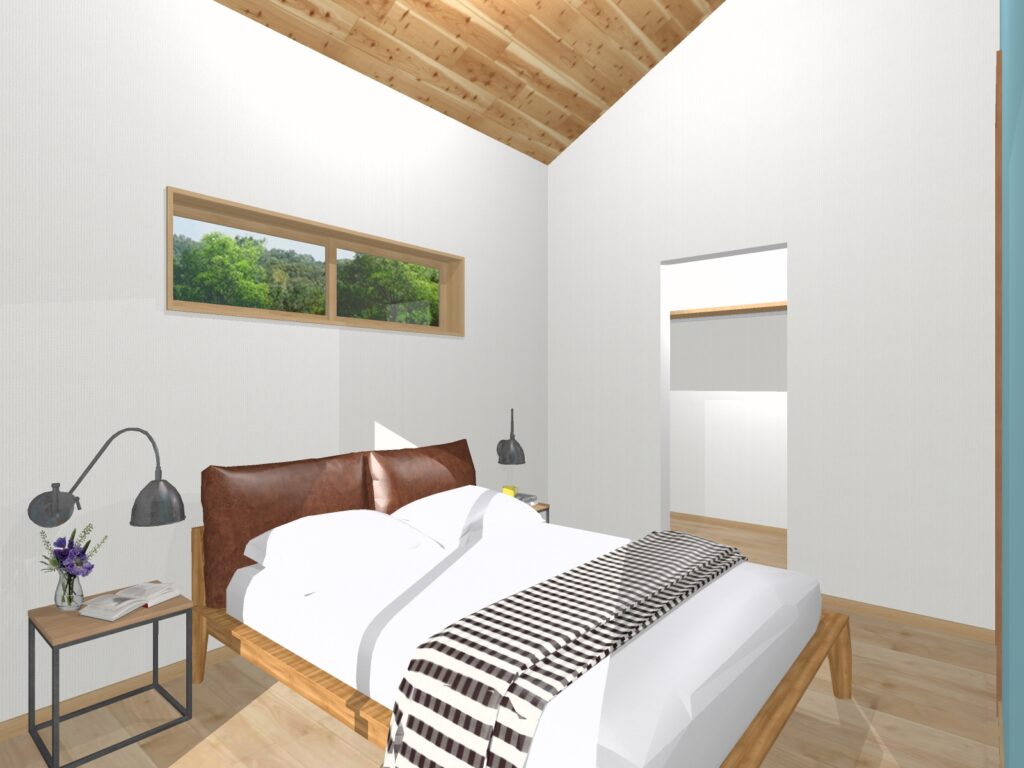 落ち着いた色合いで、ゆっくりと休める寝室。