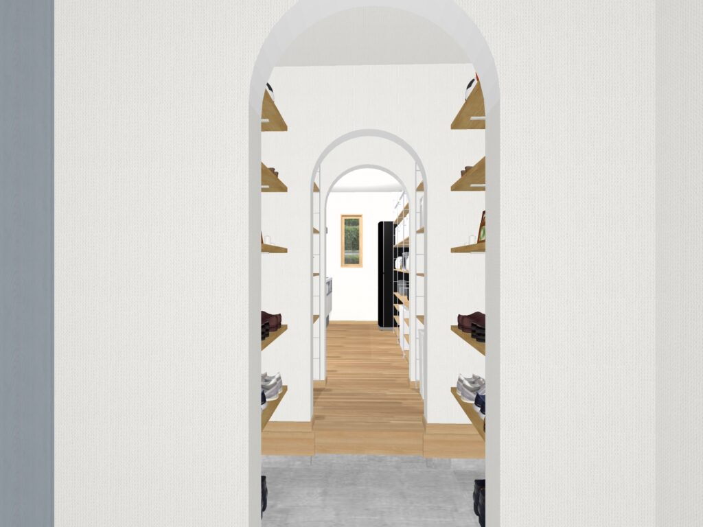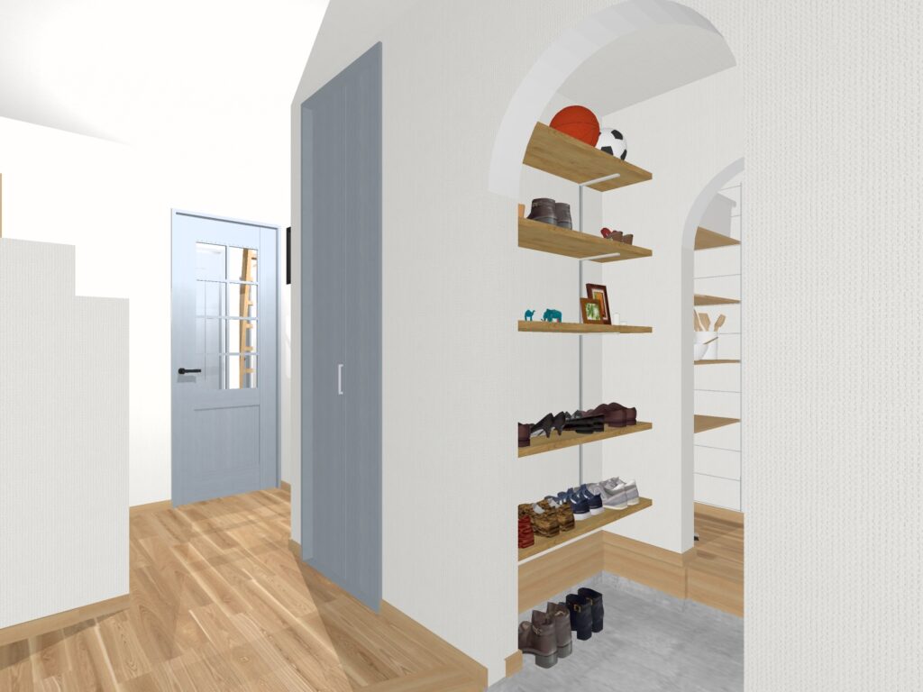 また、玄関からシューズクローク~パントリーを経由してキッチンへと繋がる動線は