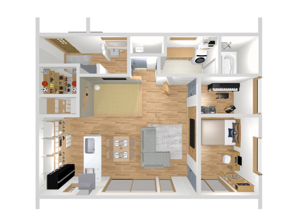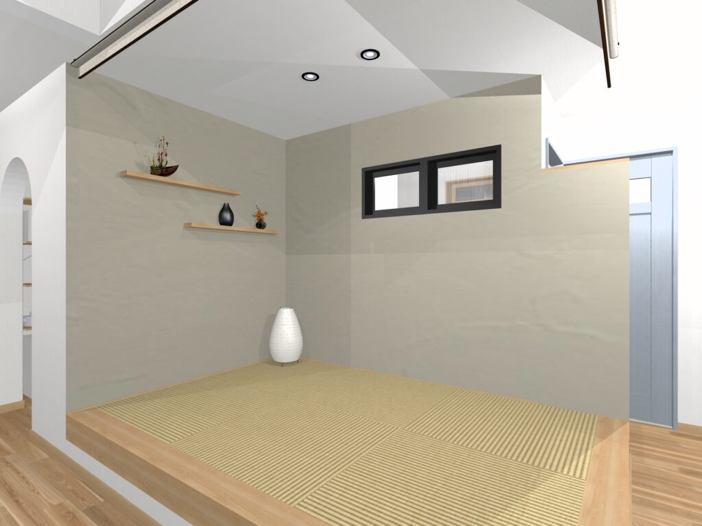こちらの畳コーナーはロールスクリーンで仕切ると必要な時には客間に早変わりします。