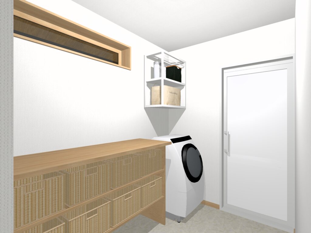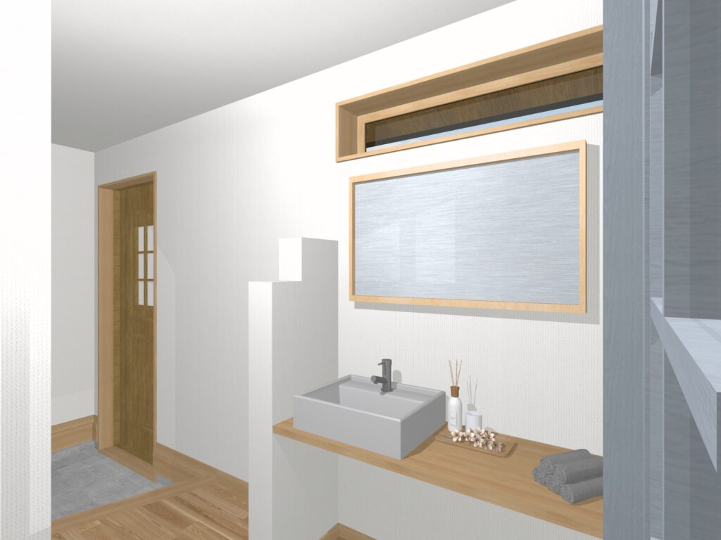 洗面スペースが独立しているため、ご来客の方が洗面台を使うようなシチュエーションでも