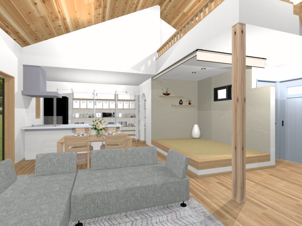 リビングに隣接する小上りの畳スペースとロフトリビングやホビールームなど、
