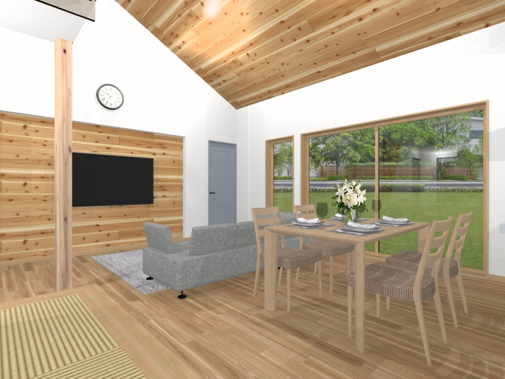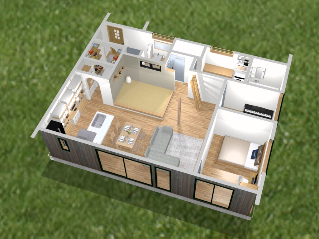 お家のいろいろなところに居心地のいい場所をつくることができる平屋建てのプランです。