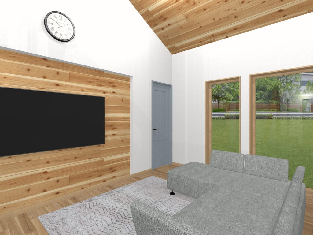 リビングのTVスペースは壁の一部を凹めたニッチとし、壁掛けTVもスッキリ設置ができます。